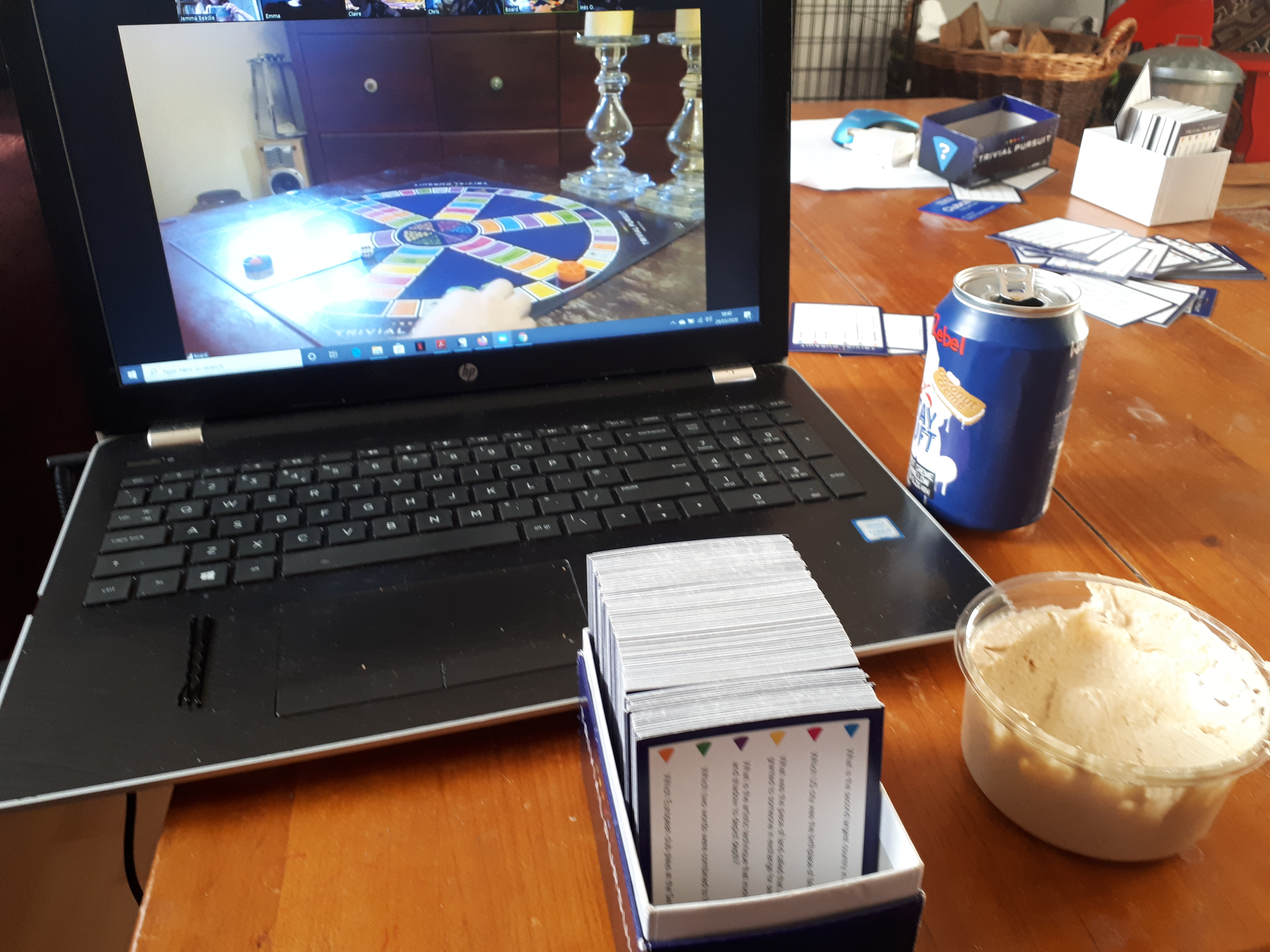 It has been a blessing to be able to speak to friends and family via videochat, but the most hilarity came from playing on Houseparty. After a successful trial by my parents, we also managed to make Trivial Pursuits work well, using a seperate screen set up on the board so everyone could see what was going on.